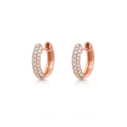 Micro pavé diamonds set in 18K rose gold earring hoops.
