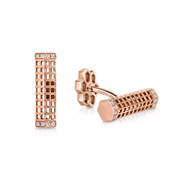 18K rose gold cufflinks with pavé diamonds. Accompanied by our signature Honeycomb hinged back.
