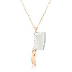 High-polished in two tones of 18K gold with diamond rivets on handle. Double sided.