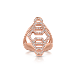 Connected open rings in high polished 18K rose gold, negative space with diamond pavé borders.