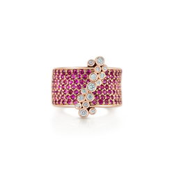 Pavé rubies set in 18K rose gold, with diamonds cascading down the center.