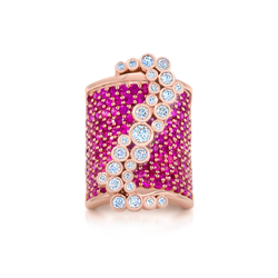 Micro pavé rubies set in 18K rose gold, with diamonds cascading down the center.
