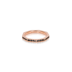 Micro pavé black diamonds set in nine-sided, 18K rose gold.