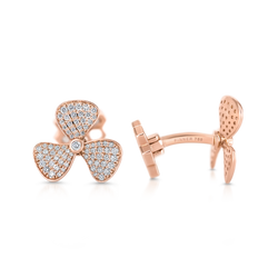 High-polished 18K rose gold propellers that spin, set with micro pavé diamonds.