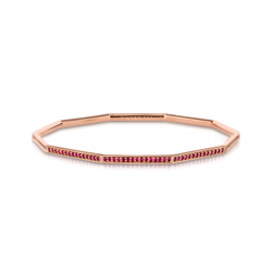 Nine-sided, 18K rose gold bangle set with micro pavé rubies.