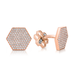 18K rose gold cufflinks with pavé diamonds. Accompanied by our signature Honeycomb hinged back.