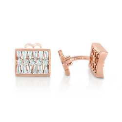 High polished 18K rose gold. Tapered baguette and round diamonds.